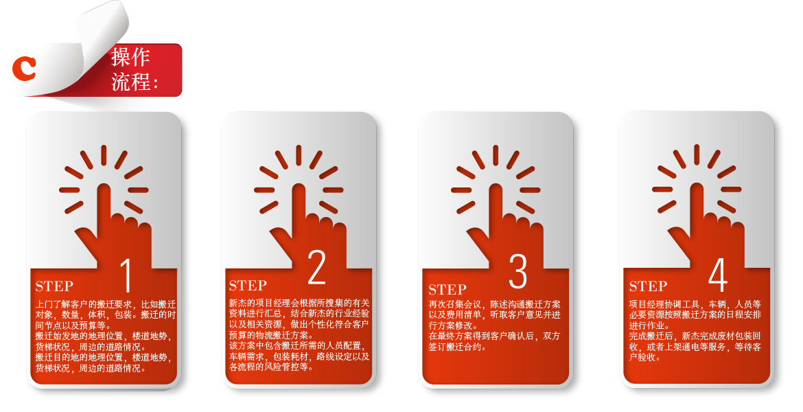 會涉及搬遷要求,時間節(jié)點, 具體落實人, 風險管控等內(nèi)容, 也包含搬遷過程中的拆卸, 包裝,運輸,再定位以及廢材回收等方面。